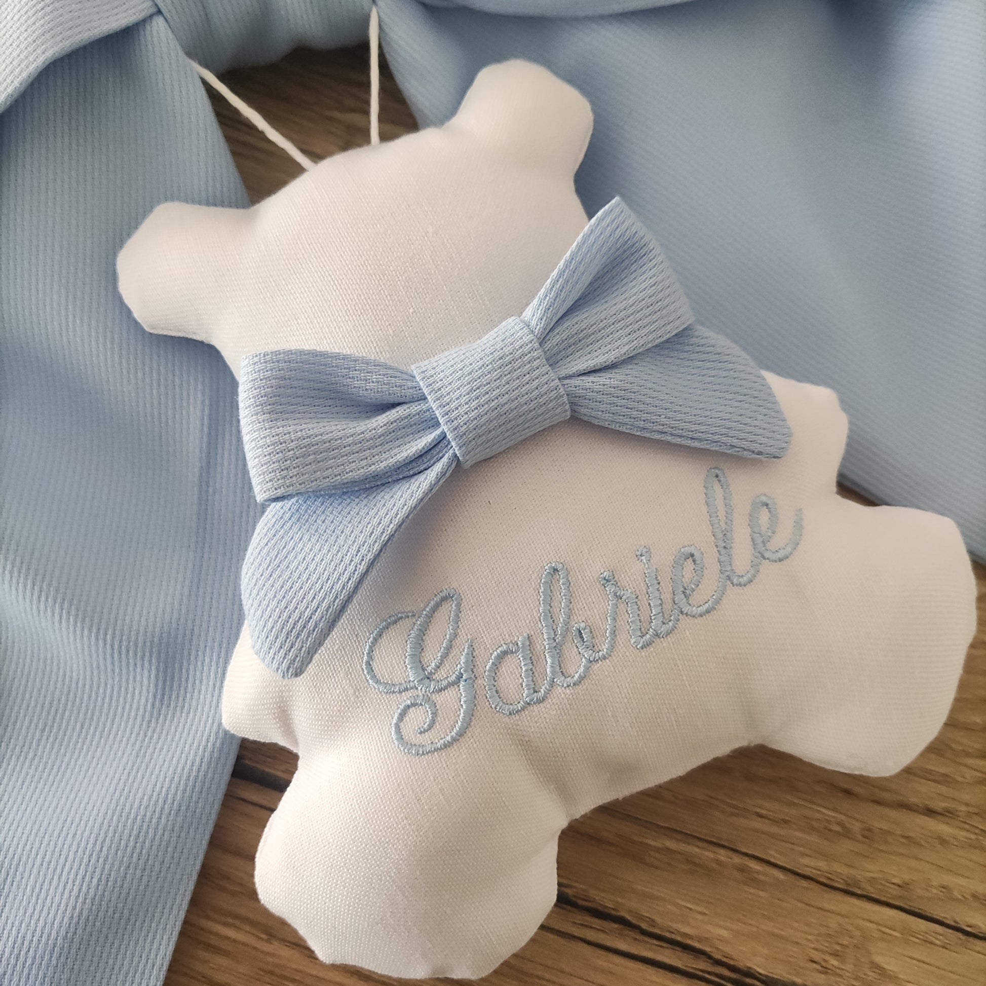 Il fiocco è stato studiato e creato in modo tale che conservi la forma anche da appeso e nel tempo.