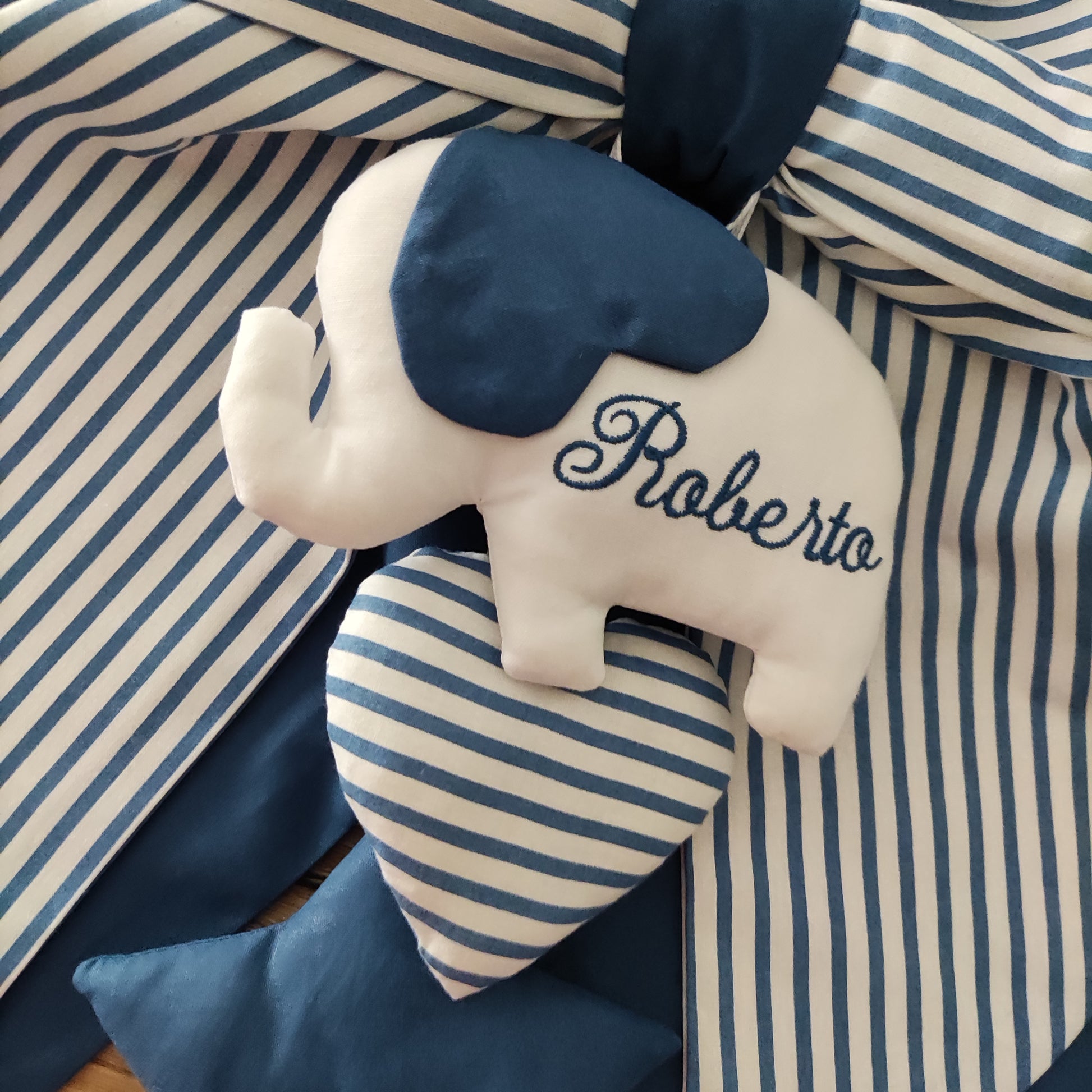 Il nome è disponibile sia ricamato a macchina che stampato su vinile termoadesivo e sarà sempre in tinta con il tessuto scelto (SCRIVILO AL CHECK OUT IN "Order special instructions").