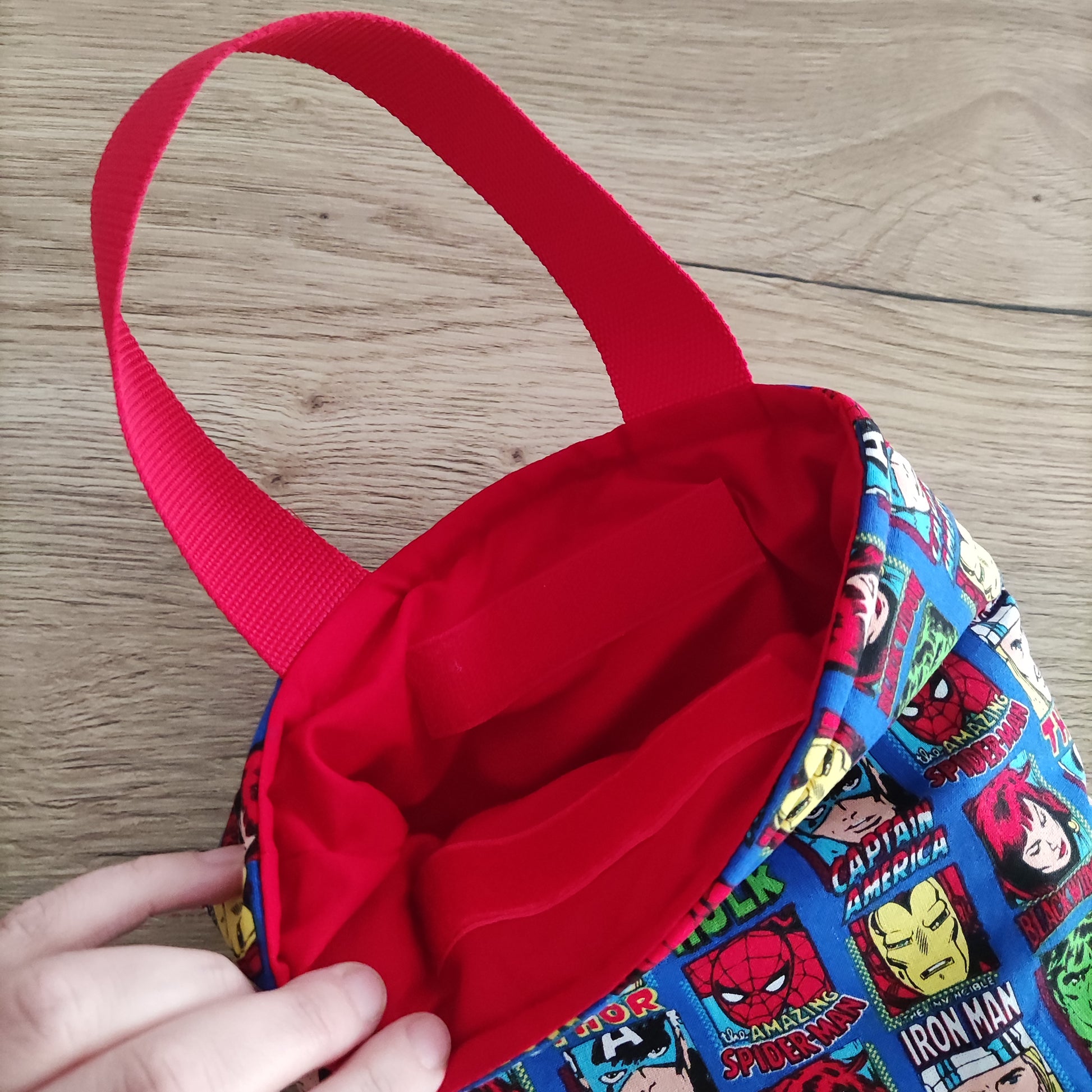 Chiusura in velcro e comodo manico per trasportarlo.