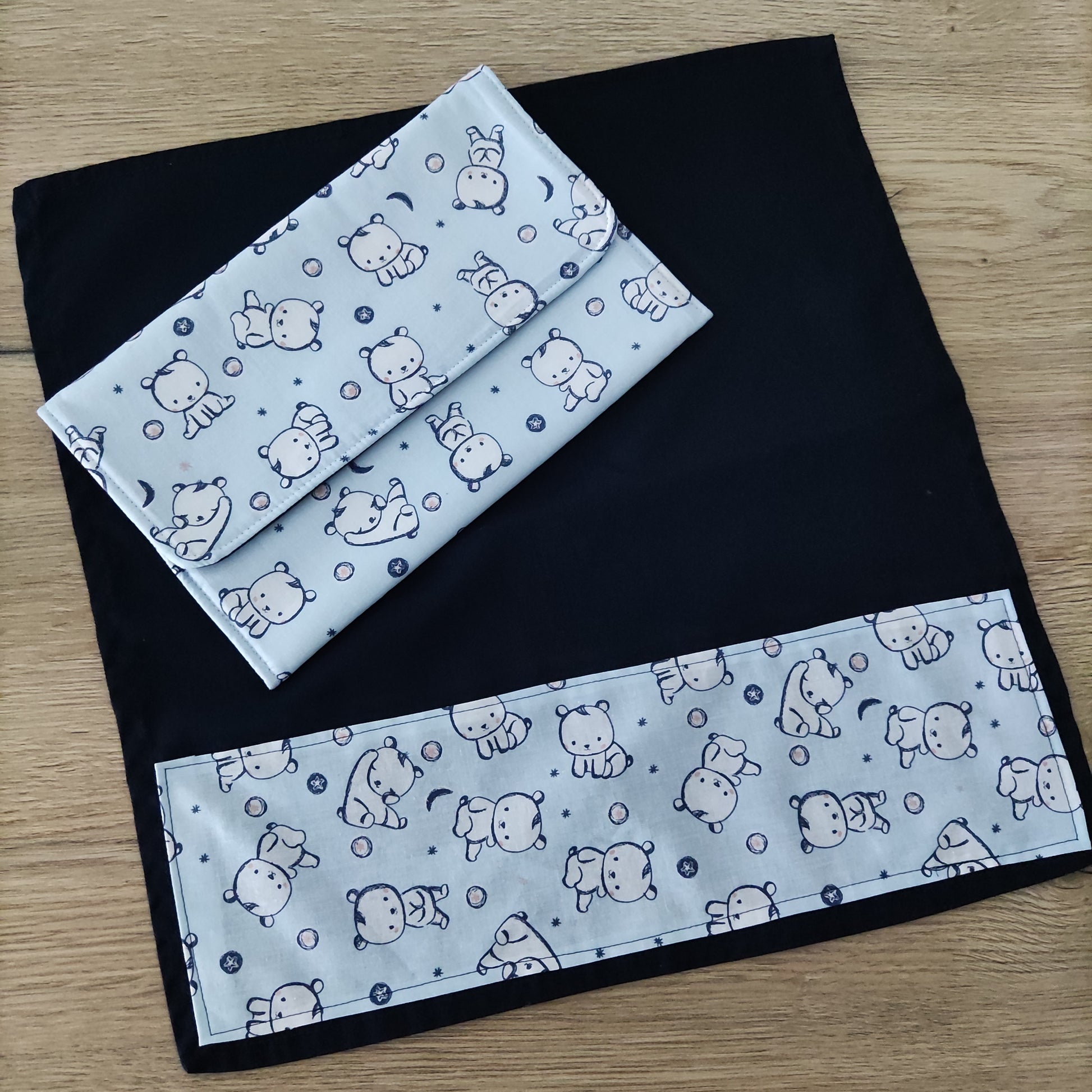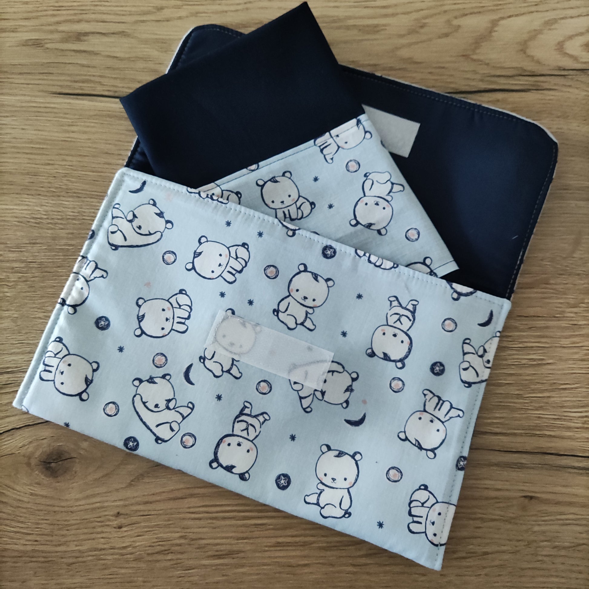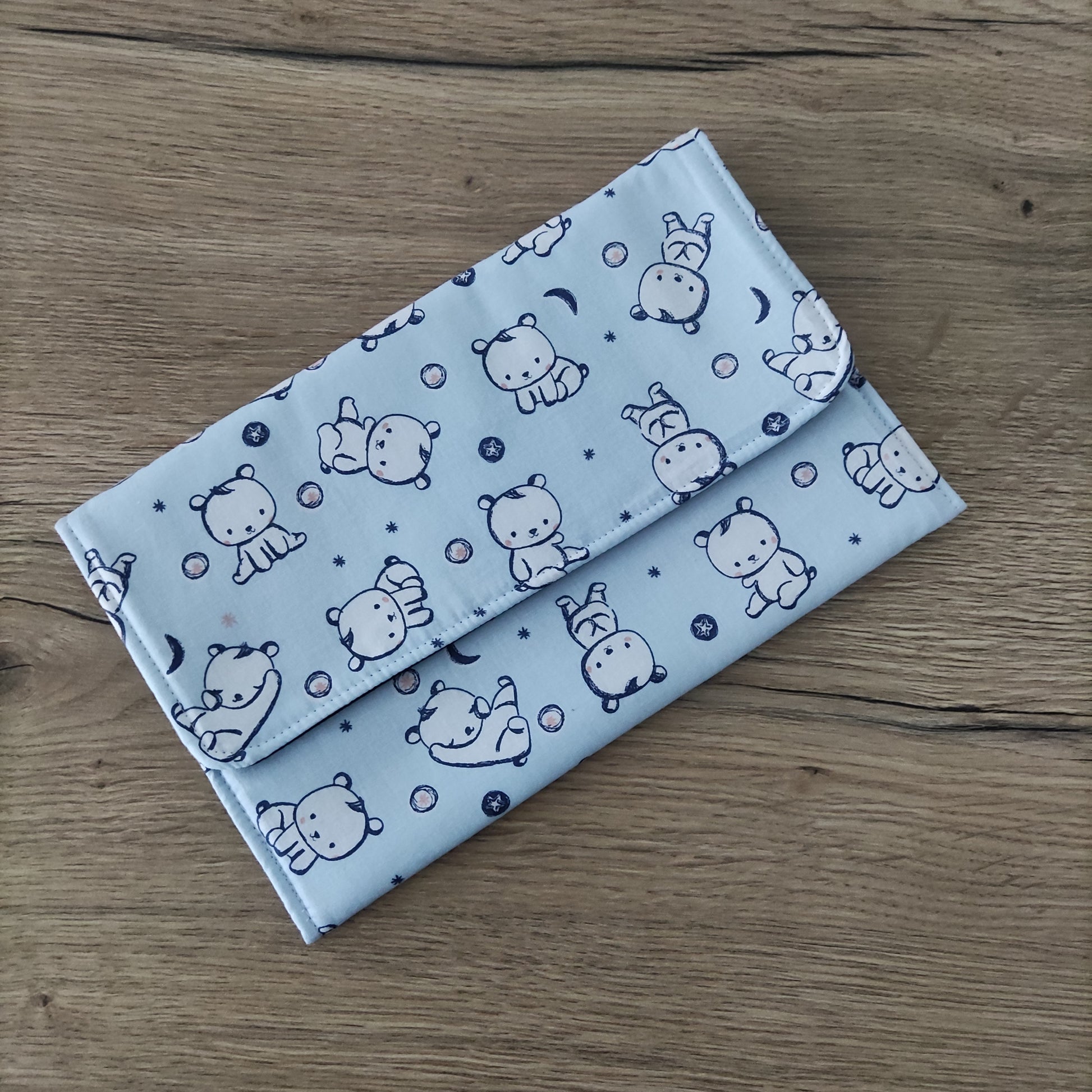 Porta tovagliolo asilo con tovagliolo - Fantasia orsetti bianchi base azzurro