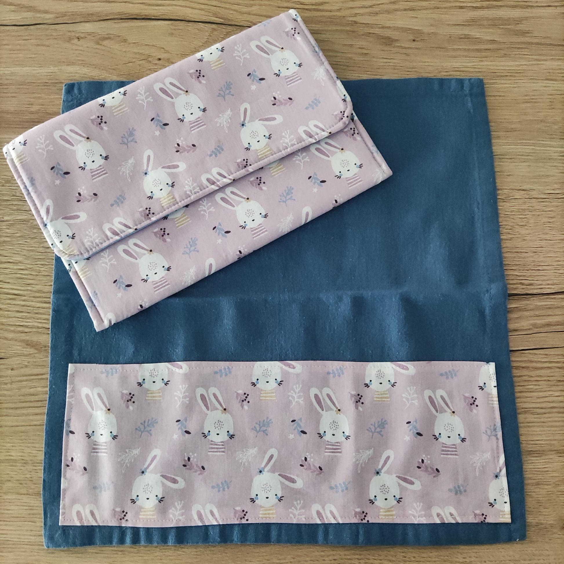 Porta tovagliolo asilo con tovagliolo - Coniglietti lilla