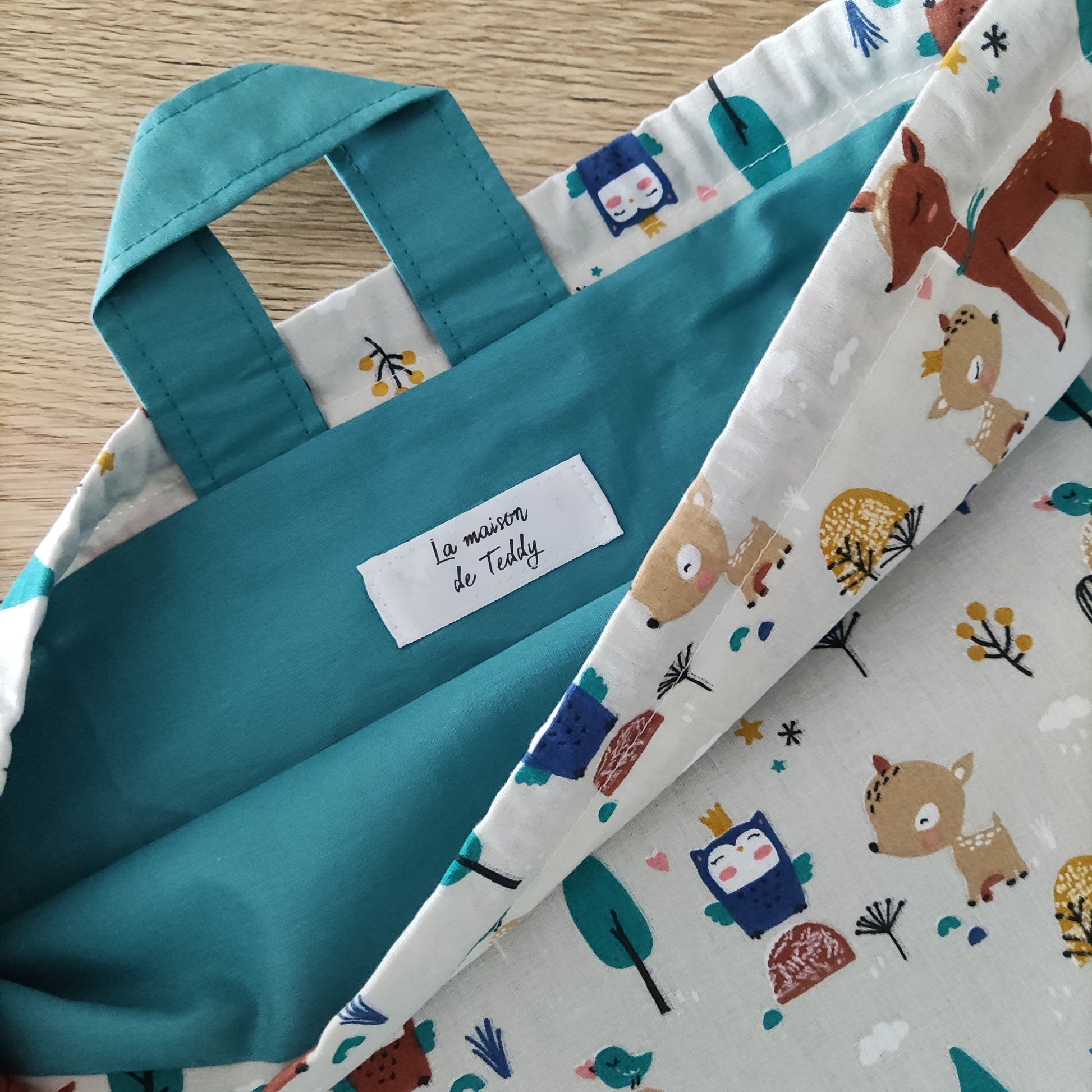 Il nome verrà stampato sul tessuto con termo vinile in tinta con la fantasia scelta, non è possibile scegliere il colore o la dimensione e carattere del nome.