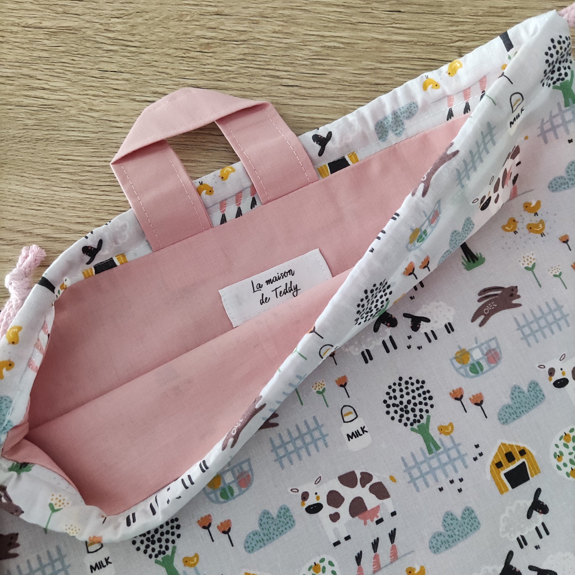 Il nome verrà stampato sul tessuto con termo vinile in tinta con la fantasia scelta, non è possibile scegliere il colore o la dimensione e carattere del nome.