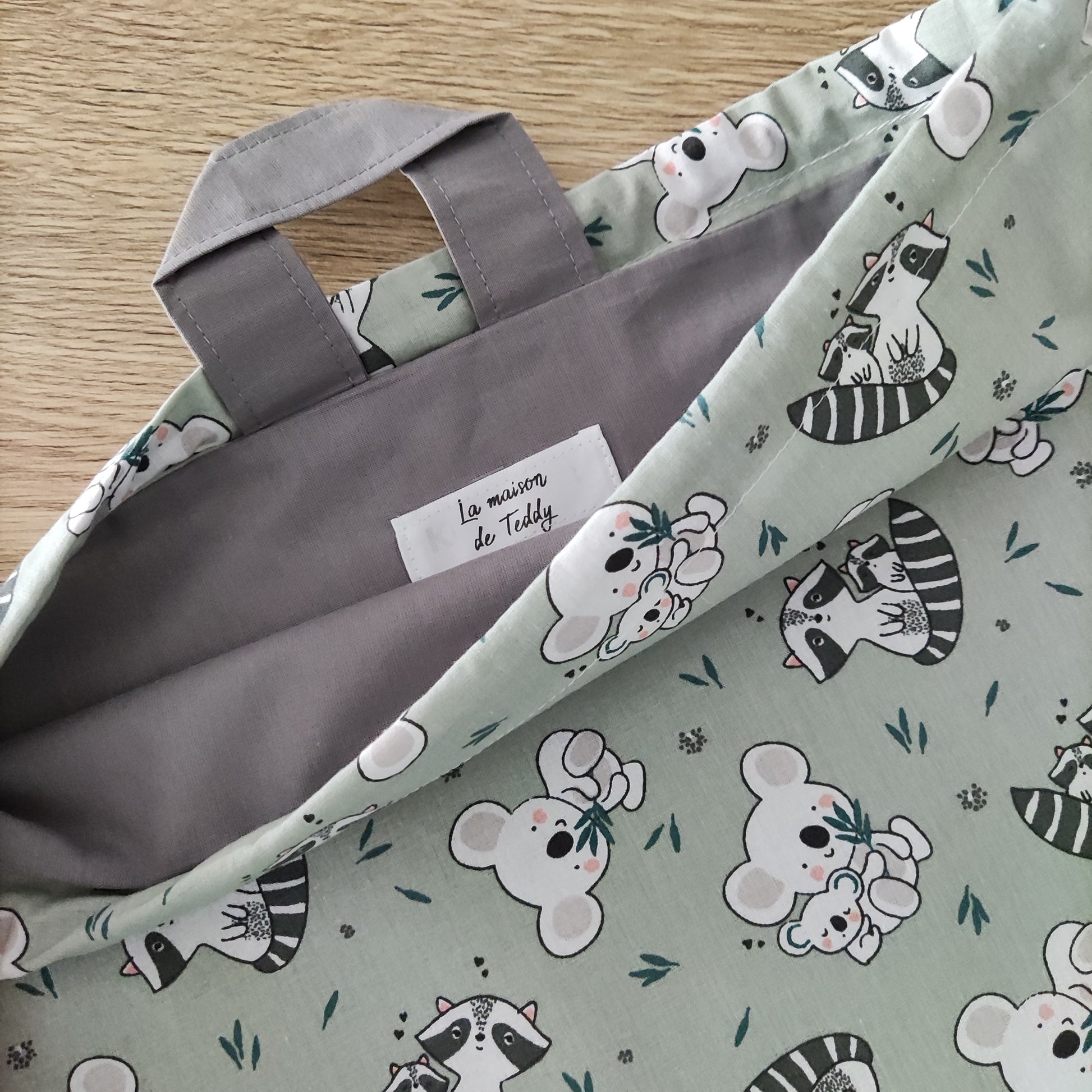 Il nome verrà stampato sul tessuto con termo vinile in tinta con la fantasia scelta, non è possibile scegliere il colore o la dimensione e carattere del nome.
