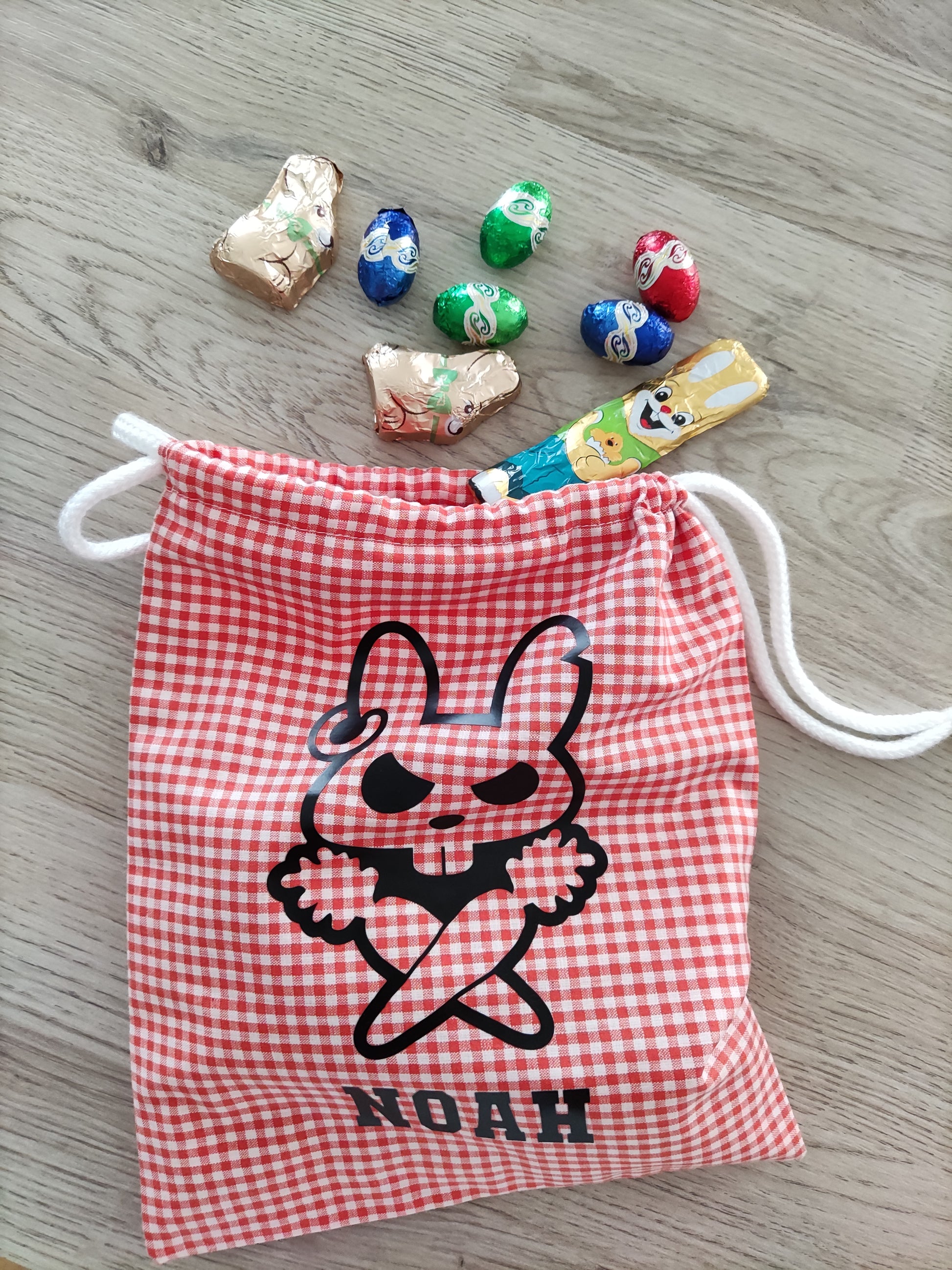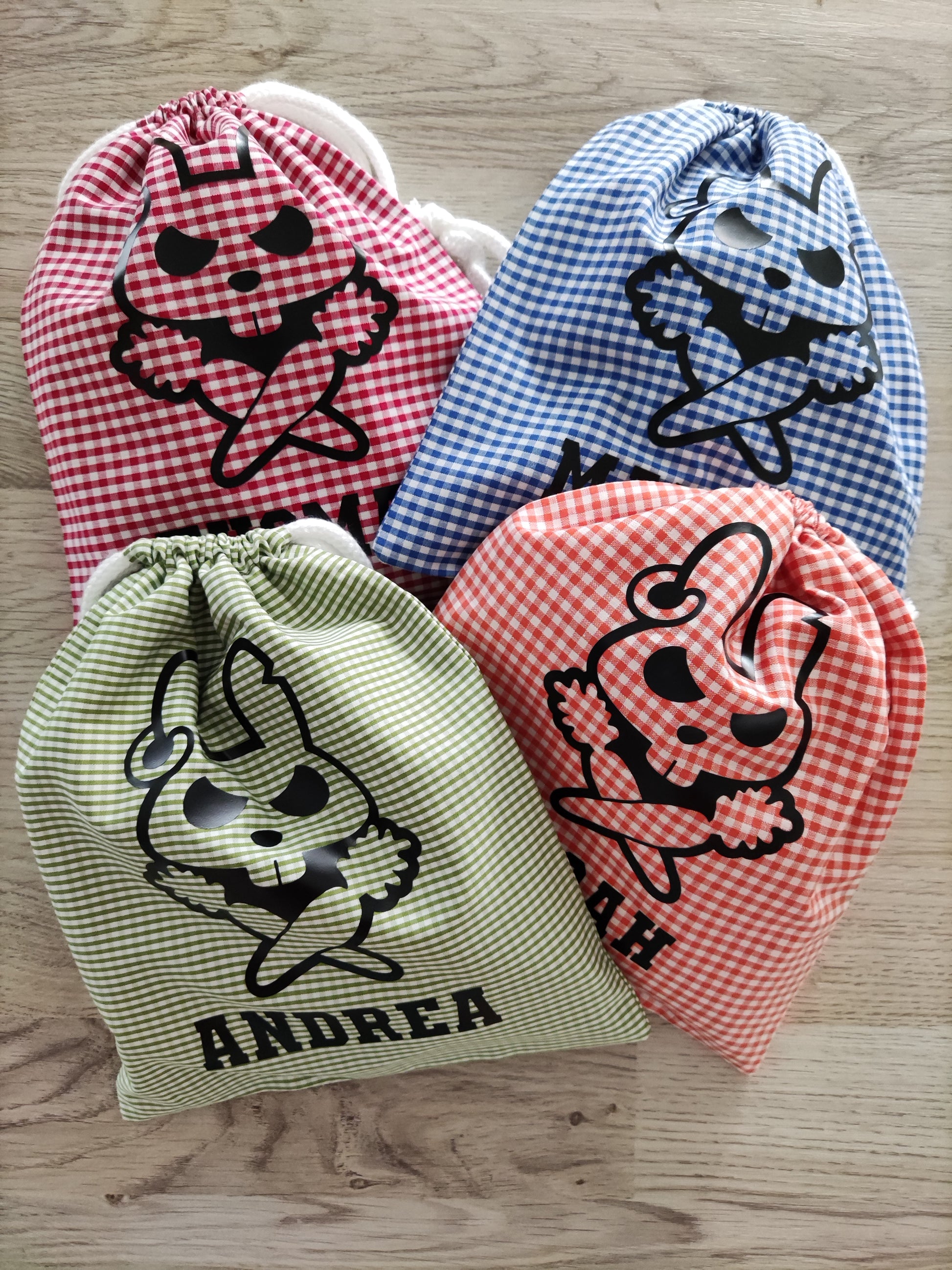Sacchetti porta ovetti con chiusura a cordino personalizzati con il nome (SCRIVILO AL CHECK OUT IN "Order special instructions").